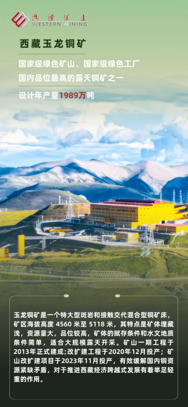 高质量发展是企业永恒的主题。近年来,西部矿业始终牢记“国之大者”,以“做强矿山主业”为着力点,深化改革激发内生动力,科技创新赋能产业升级,绿色转型践行生态使命,“矿山版图”不断壮大,现拥有8个探矿权,16个采矿权,开发运行西藏玉龙铜矿、青海锡铁山铅锌矿、四川呷村银多金属矿、内蒙古获各琦铜矿、四川会东大梁铅锌矿、新疆哈密黄山南铜镍矿、新疆哈密白山泉铁矿、甘肃肃北七角井钒及铁矿、内蒙古双利铁矿、格尔木拉陵高里河下游铁多金属矿等十座大型矿山,公司保有有色金属及贵金属资源储量1128.18万吨,黑色金属资源储量2.95亿吨,经营效益越来越高,综合实力越来越强,社会影响力越来越大,持续推动企业做强做优做大,不断加快高质量发展步伐,位居国内特大型矿山企业前列,在矿业报国的奋进路上书写了壮丽的西矿诗篇。