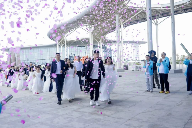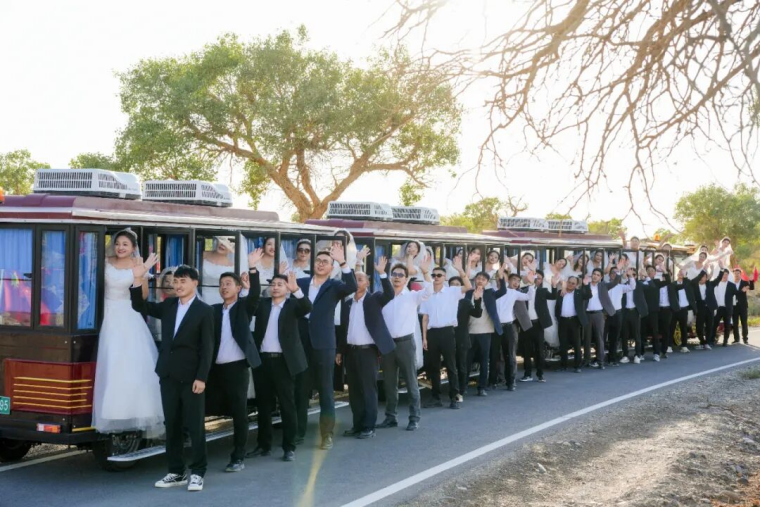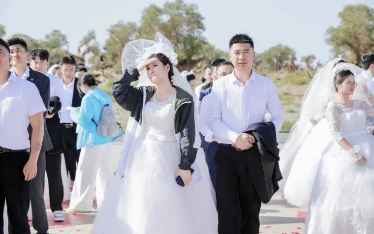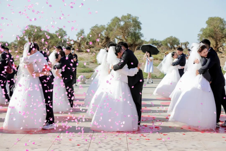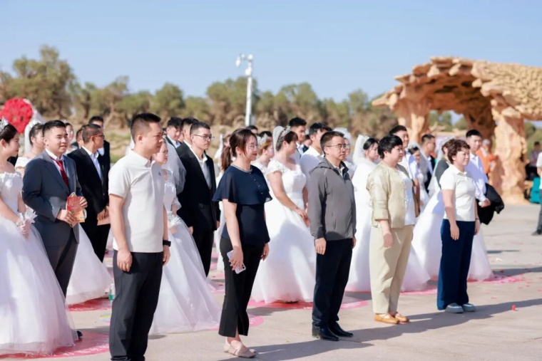 当一对对新人手挽手走过“亿万年”的时光,空气中便弥漫着爱的味道。8月29日七夕节,集团公司在伊吾胡杨景区为50对新人举办“情定胡杨•缘启新程”主题集体婚礼。这场融合了自然之美、爱国情怀、企业精神与人文温情的婚礼,不仅圆了新人们对特色婚礼的向往,更让公司“坚信、坚持、坚守”的企业精神与“艰苦奋斗,自强不息,扎根边疆,甘于奉献”的胡杨精神同频共振,在戈壁之上奏响爱与奋斗的乐章。