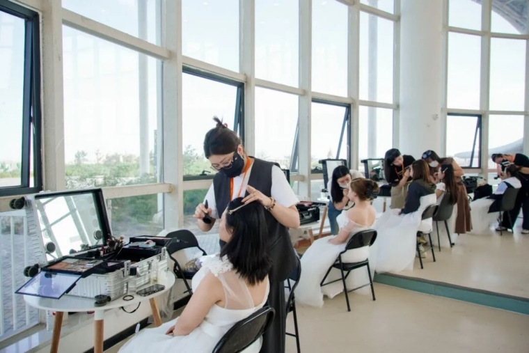 清晨的胡杨在阳光下闪烁着暖人的金光,新人们早已在专属妆造区换上盛装,每一抹笑意里都藏着浓浓爱意和太多期待。与此同时,新郎们执行“秘密任务”——制作特色馕手捧花。原本硬朗的汉子们动作格外轻柔,将一支支红玫瑰、粉玫瑰和一支支特色馕玫瑰用满满爱意黏在一起,制作成一束束带着麦香的“手捧花”,烟火气煨着的麦香与沉甸甸的爱意一同绽放,一对对新人欢笑着递过各色清甜瓜果和小吃,热闹又暖心。